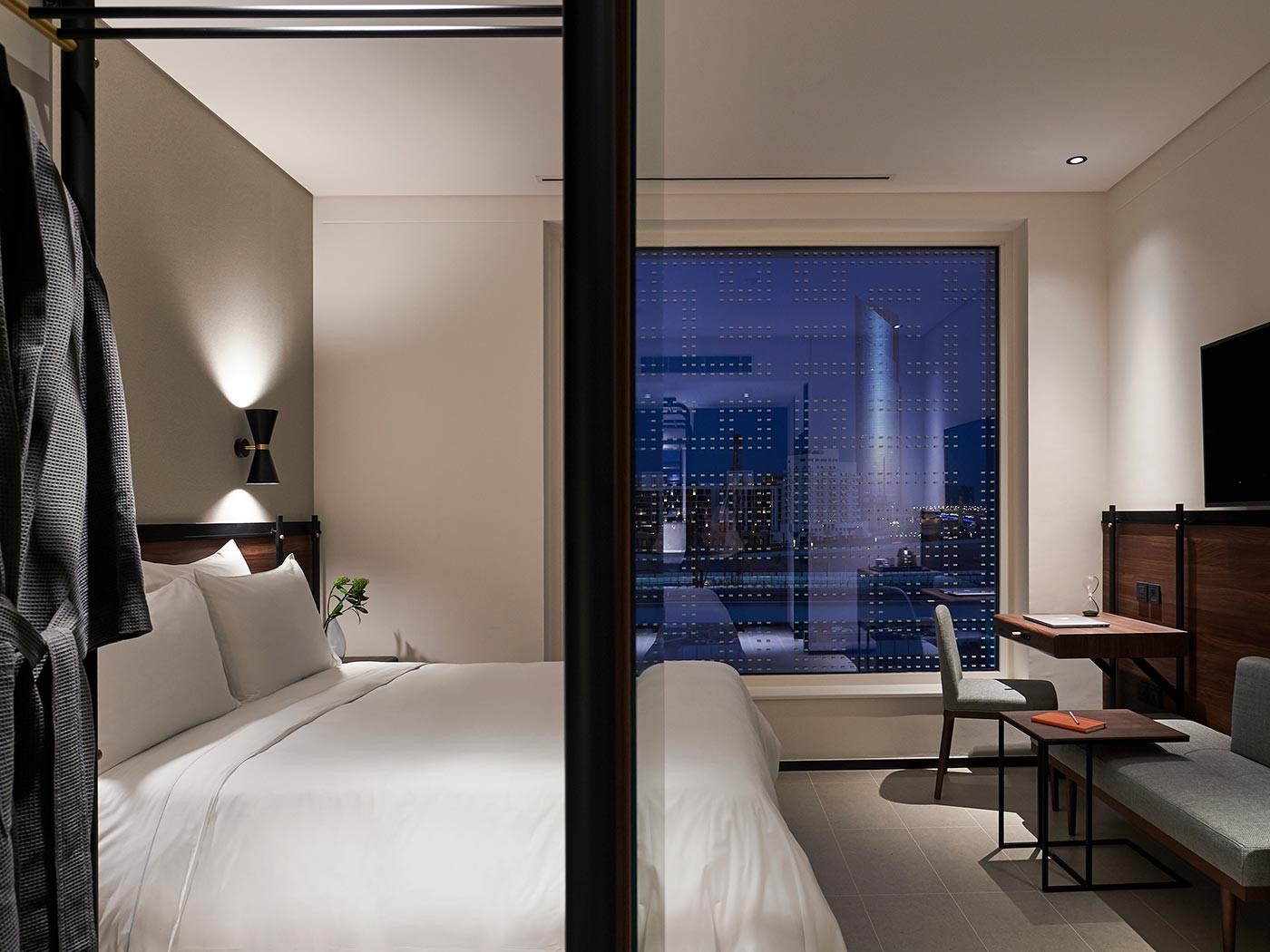 Chaque chambre offre un aspect unique de Dubaï à travers les grandes fenêtres qui permettent une vue imprenable sur la crique de Dubaï et le quartier historique d’Al Jaddaf. Les caractéristiques des chambres comprennent un sol en pierre claire et des meubles en bois de noyer chaleureux, créant différentes ambiances tout au long de la journée et dans la nuit.